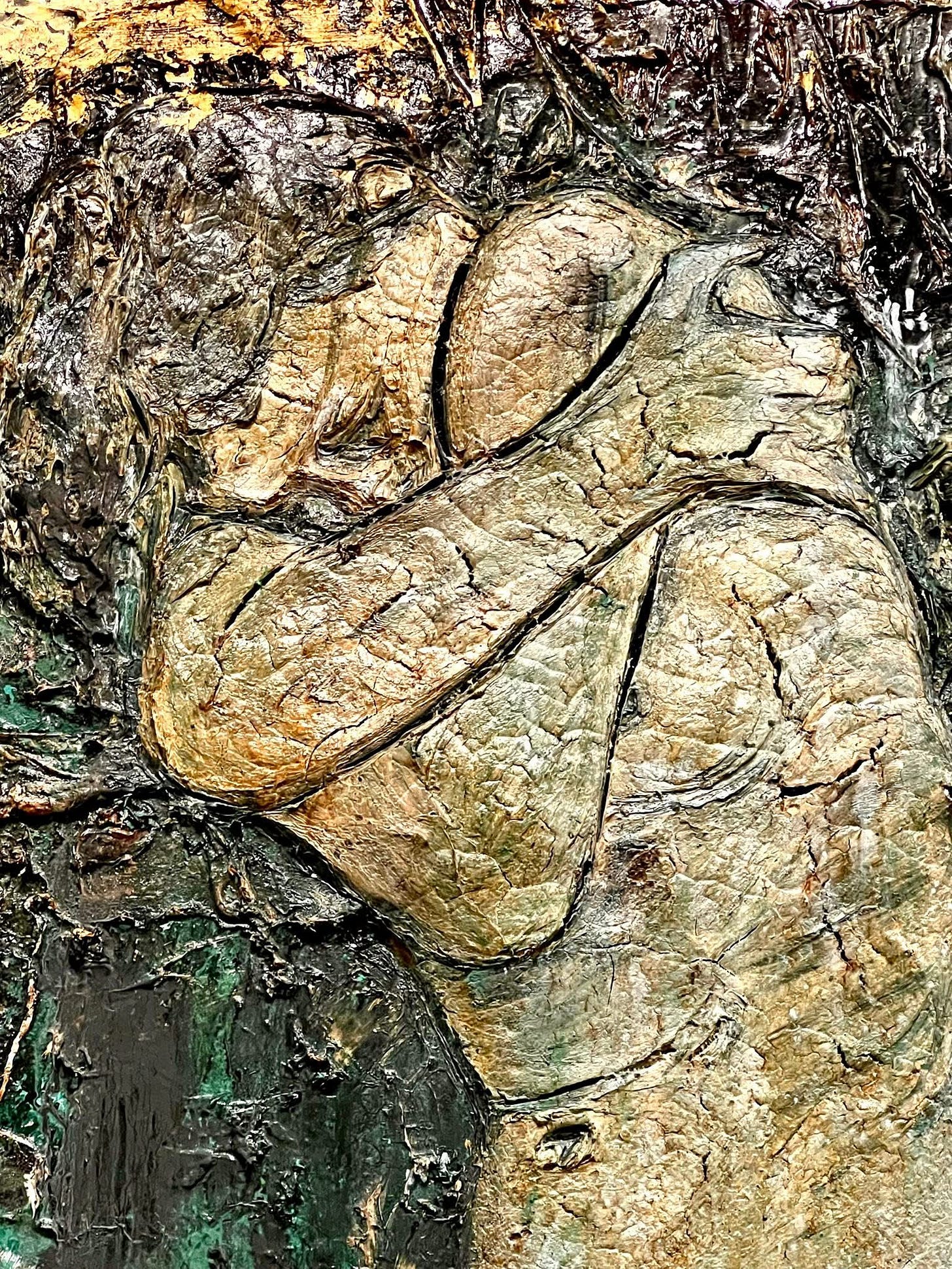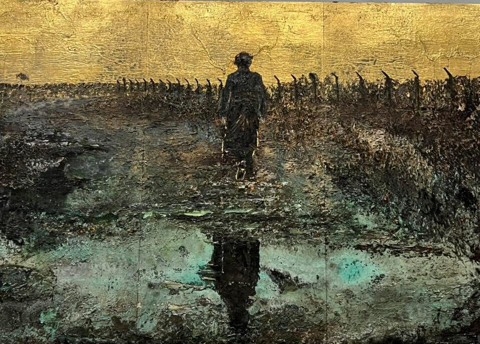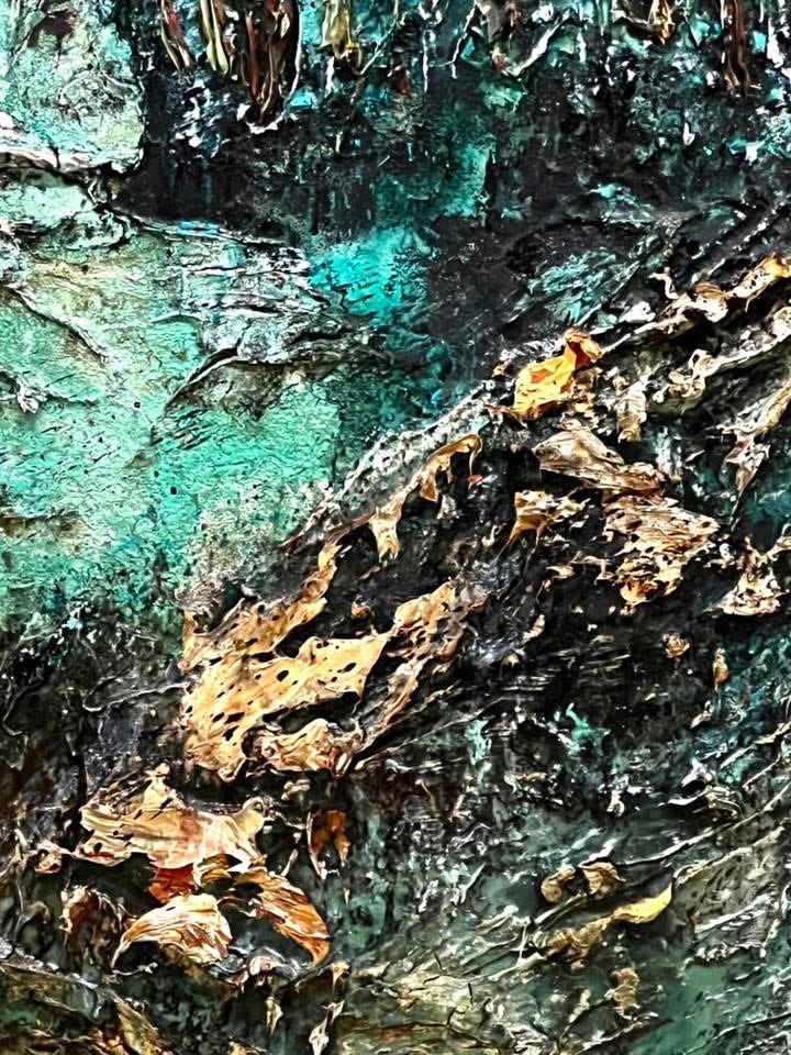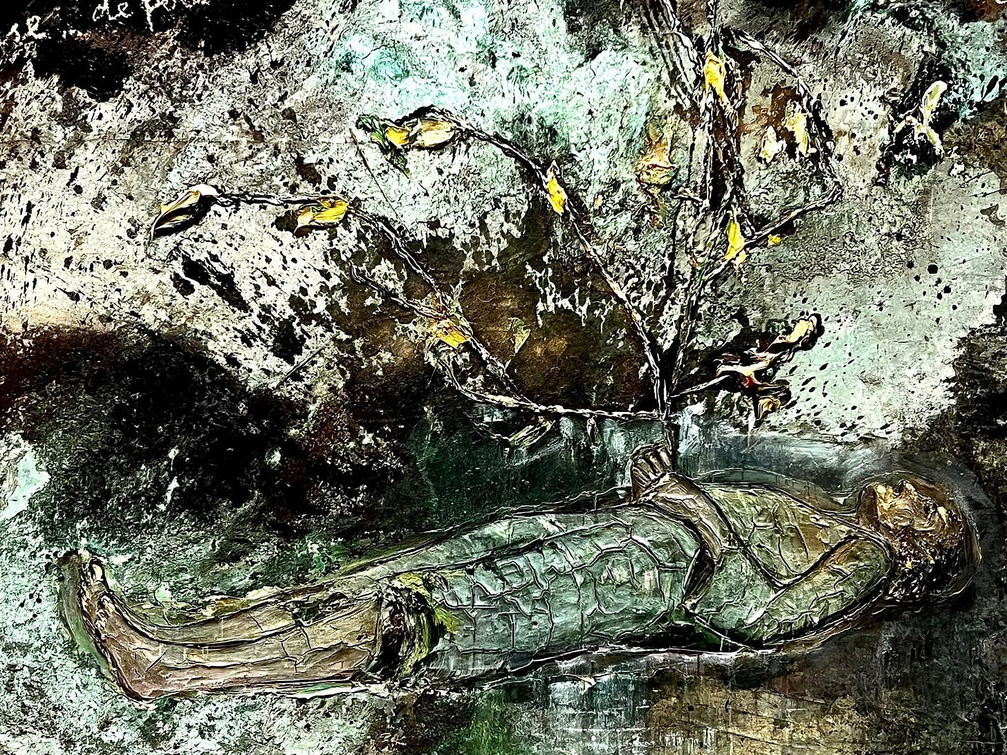 I passed by scene after scene of greens, browns, golds and bronzes floating softly on the palate. Gold leaf sunlight passed through the waves, the floating wood, the newly dropped leaves singing a last song as they seemed to skip miraculously on water. I felt myself floating with Anselm looking up at the sky and seeing my ‘head in the clouds’, of sinking just below the surface and gazing up at what fish might see. I felt his smallness before such enormous power, and his longing to let his heart break open to the pathos of rivers. In an unexplainable way, I was given the gift of a sudden Synesthesia; when one sense can be experienced by another. When somehow a person can see sound, or hear colors. For me it was the smell. The smell of my lake. In this paint, this gold leaf, this jumble of river debris painted so as to flow out of the canvas, I found my old pathos. I smelled it through sight. Anselm had given me a gift, and I never knew him until this moment. He, too, was taken with rivers. He traveled Europe for them, and even came to the U.S. to experience our own. That is what I was seeing here. A whole exhibit of water meeting man in solitude. I like to think his own artistry was born once when he was young and sitting by a river that smelled pungeant and magical. He could not have more easily and deftly read my heart. How is that possible? I don’t bother to ask that question much anymore. It is the way of God’s universe, for its Creator is all beauty calling us home through the best means at his disposal in our fallen state: pathos and longing.