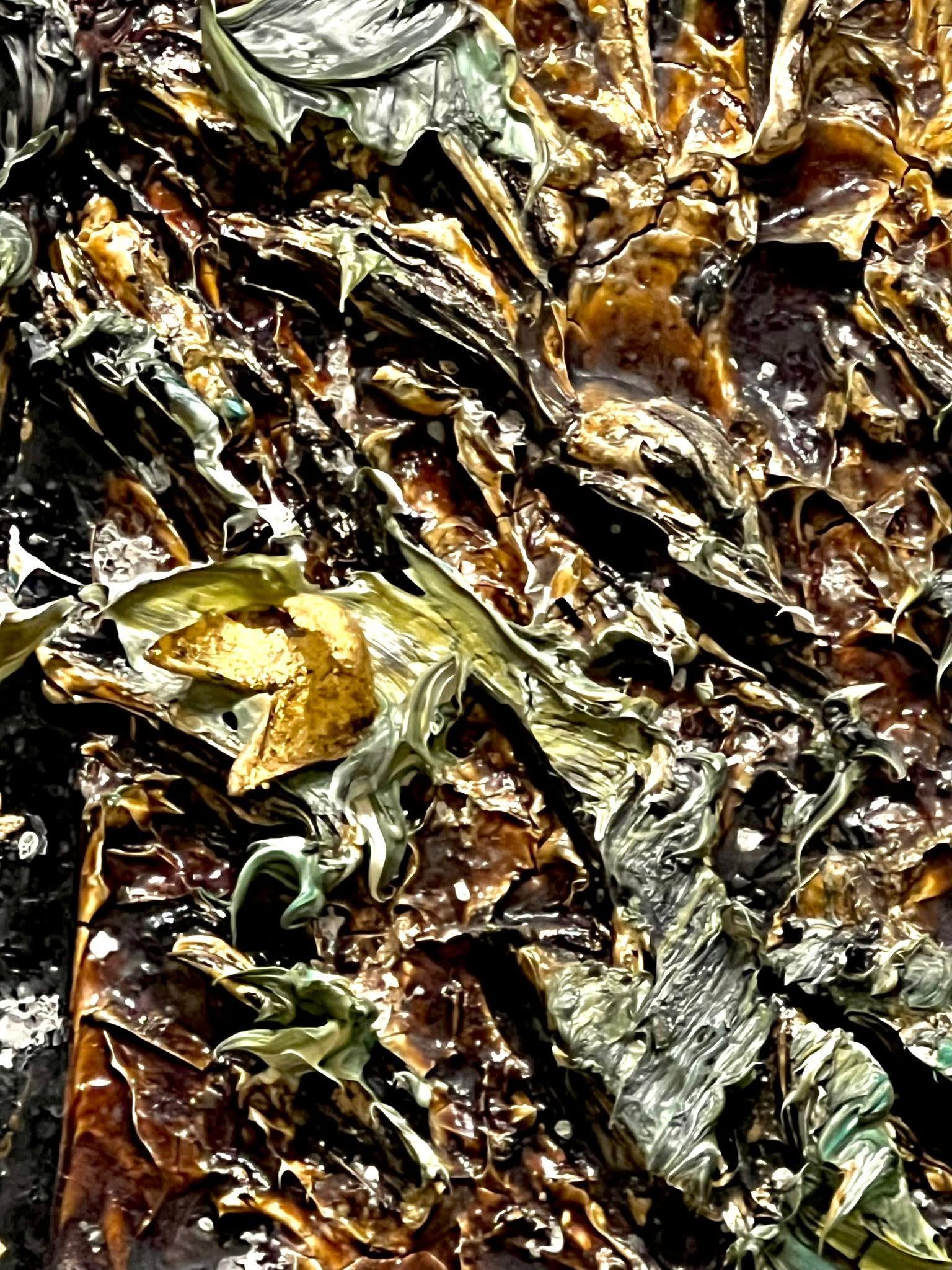 Kiefer painted with different mediums to express movement and color. In some of his creations, waves seem to gush out of the canvas. You can almost touch the golden leaves, the sticks, the rocks, the foam on water as it rises lifelike from the painting. Everything seems to be moving. You have an irresistible urge to touch the leaves and to walk right through the painting they are so lifelike. And yet they do not lose their modern form. They are both real and abstract. Surreal and yet utterly real. They carry that cache of dark German brooding in unexpected corners. A brooding that is educated to find beauty by waiting through suffering. It is a patient, meticulous sort of cache.